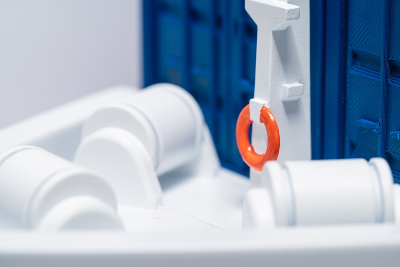 Intricately crafted and packed with significance, it became a tactile storytelling tool for months of B2B activation and engagement across Singapore. The bespoke 3D-printed shipping vessel was complete with functional doors that opened on the sides, mirroring its life-sized counterpart. This detail enabled easy access to the contents during demonstrations; while magnetic, hand-sized containers were stacked atop the deck, each containing custom-designed cookies that featured a visual theme or stock holding within the fund.