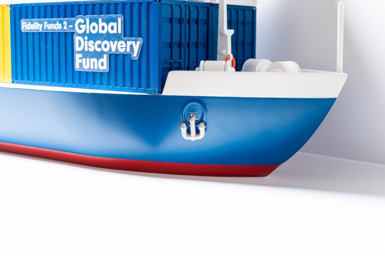 With the theme of “Discovery” in mind, Motion began by understanding the unique draws of the solution. We leaned into the diversity offered by its opportunistic all-market-cap approach, expanding this into a narrative of Fidelity enabling investors to discover quality gems across the world. Through meticulous fine-tuning, we created a miniature replica of a cargo ship—a powerful symbol of global trade, exploration, and possibilities.